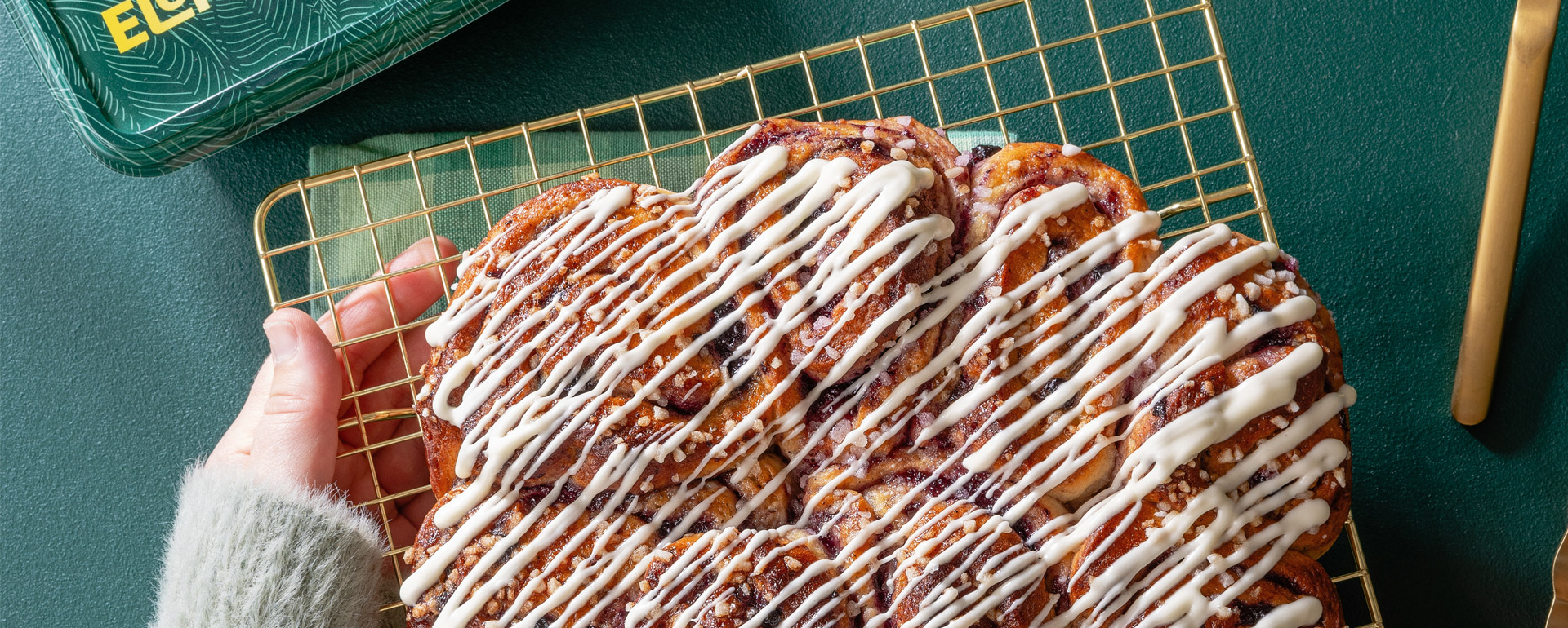 Byt ut de vanliga kanelbullarna mot en saftig bullplåt med blåbär. Färskostglasyren är pricken över i:et! Perfekt recept för dig som älskar kanelbullar och vill testa en ny variant på de klassiska bullarna. Bullarna har en fyllning av söta blåbär och du gräddar dem tätt ihop på en plåt. Resultatet blir en supersaftig stor brytbulle! När bullplåten gräddats klart spritsar du på vår goda frosting som kröner denna kanelbulledröm! Både bullarna och vårt frostingrecept är enkelt att lyckas med. Det här receptet måste du prova!