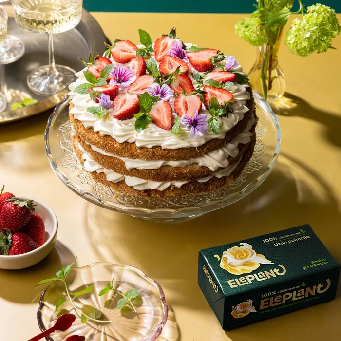 6. Vispa Eleplant och hälften av florsockret. Tillsätt färskost under omrörning och resten av florsockret. Fortsätt vispa tills fyllningen blir fluffig och glansig.
