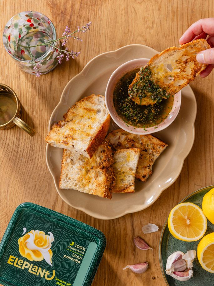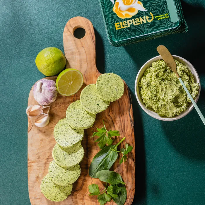 Kryddsmöret kan göras veganskt genom att utelämna ansjovisfiléerna. Byt ut ansjovisfiléerna mot till exempel 1 kruka färsk dragon.