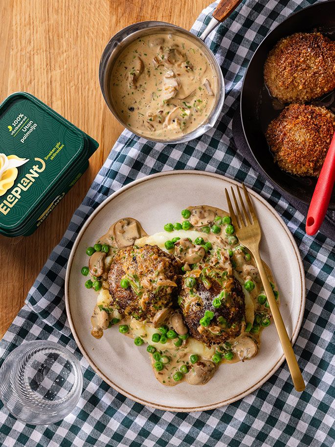 Receptet kan göras veganskt genom att byta ut animaliska mejeriprodukter mot växtbaserade alternativ. Om du vill kan du ersätta ägget med aquafaba (1 ägg = 50 ml aquafaba).