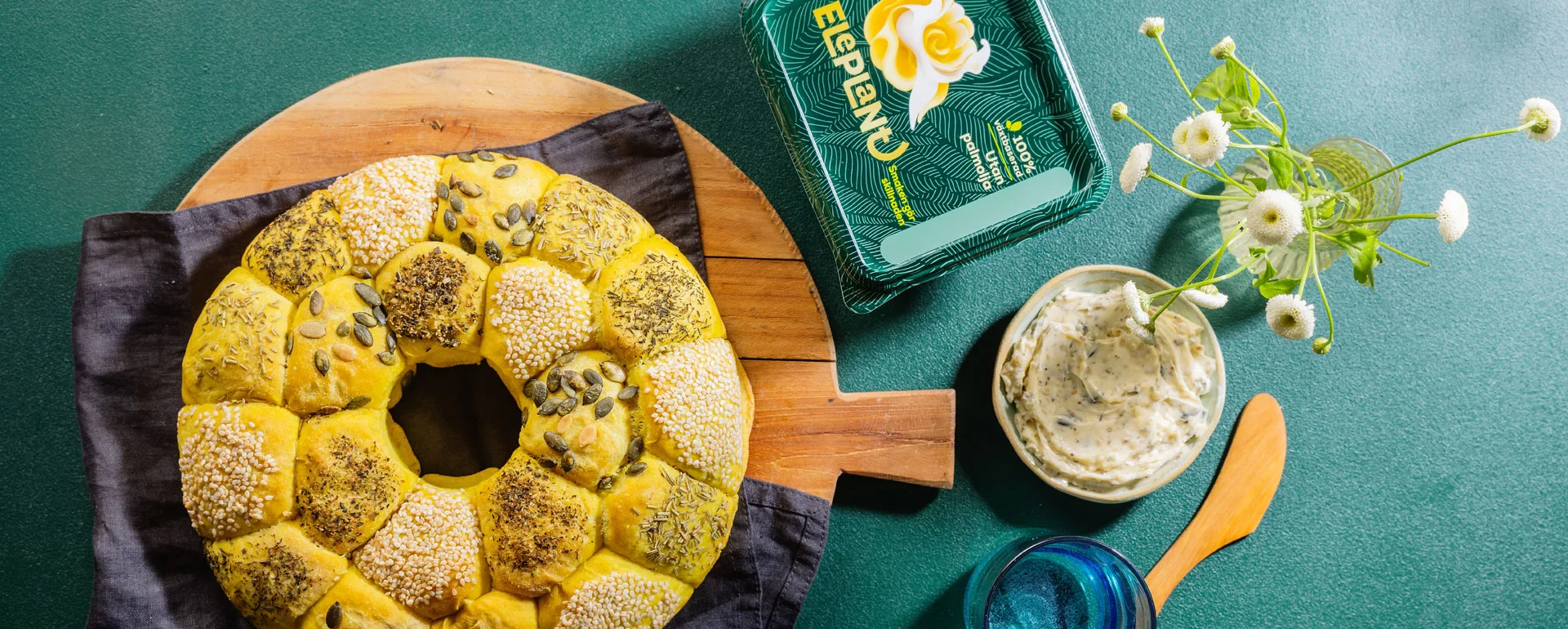 Här är ett recept på riktigt gott bröd till påsken. Vårt påskbröd är ett gyllene och fluffigt bröd som är fullt av goda frön och torkade örter. Påskbrödet bryter du i bitar och passar perfekt till buffén eller brunchen under högtiderna. Bre din brödbit med rejält lager Eleplant för bästa smak.